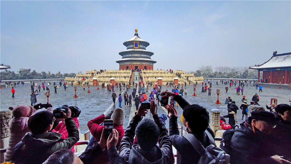 2019年11月30日,北京,天壇公園里觀雪賞景的市民絡繹不絕。喬?。垐D像/視覺中國