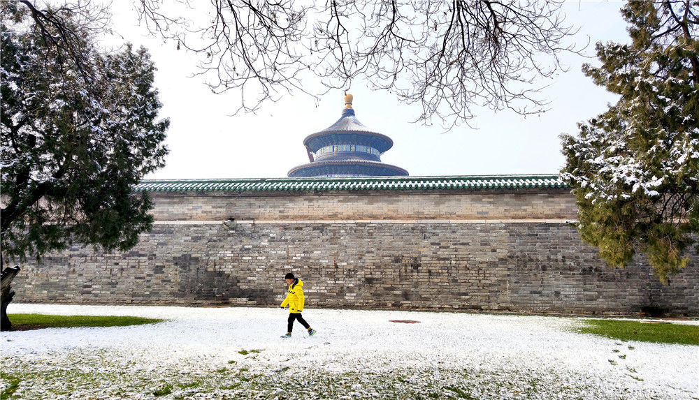 2019年11月30日,民眾在北京天壇公園內(nèi)賞雪。29日,北京迎來2019年冬季初雪。富田(攝影部)/中新社/視覺中國