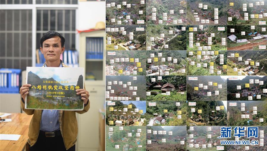 拼版照片:左圖為八好村駐村第一書記韋德王手持自己制作的“八好村脫貧攻堅(jiān)圖冊(cè)”(2019年12月16日,新華社記者黃孝邦攝);右圖為“八好村脫貧攻堅(jiān)圖冊(cè)”部分內(nèi)容的拼版照片(資料照片,韋德王攝)。