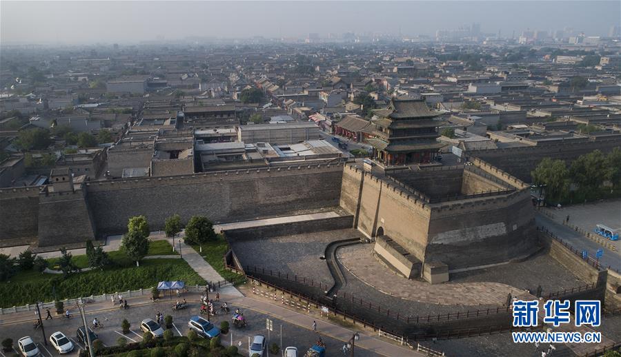 這是7月20日無(wú)人機(jī)拍攝的平遙古城北門。