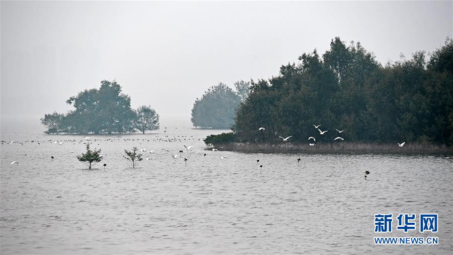 治理后的深圳河,水鳥成群飛過(2019年12月22日攝)。 新華社記者 梁旭 攝