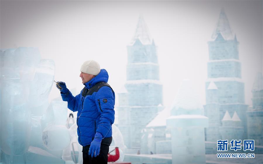 1月7日,參賽者在進(jìn)行冰雕創(chuàng)作。當(dāng)日,在哈爾濱冰雪大世界園區(qū)舉行的第三十四屆中國哈爾濱國際冰雕比賽進(jìn)入第二天,參賽的冰雕作品已芳容初現(xiàn)。新華社記者王松攝