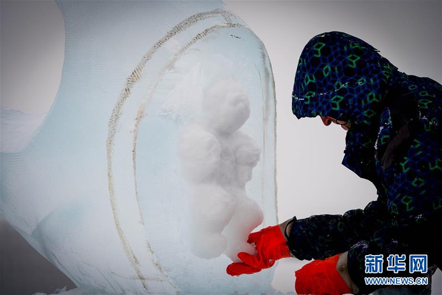 1月7日,參賽者在進(jìn)行冰雕創(chuàng)作。新華社記者王松攝