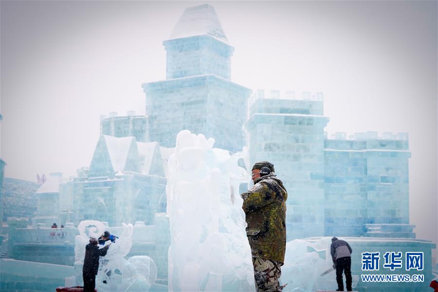 1月7日,參賽者在進(jìn)行冰雕創(chuàng)作。新華社記者王松攝