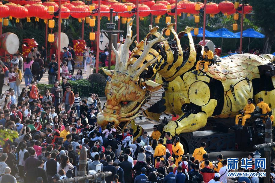 1月18日,大型機(jī)械裝置藝術(shù)品“龍馬精神”在珠海長(zhǎng)隆海洋王國(guó)巡游展示。新華社記者 劉大偉 攝
