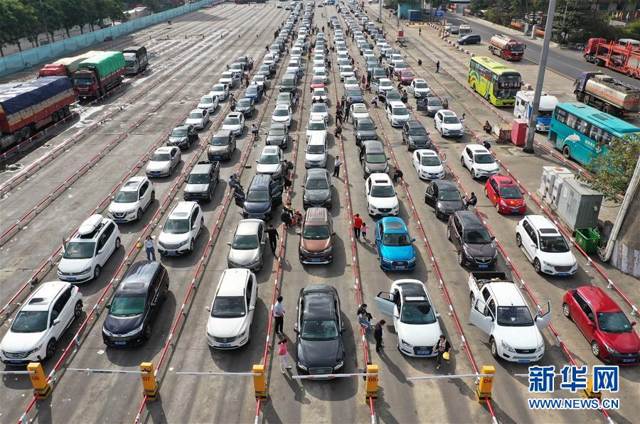 1月19日,車輛在??谛阌⒏圯喍纱a頭等待登船(無人機照片)。 當(dāng)日是春運第10天,瓊州海峽進入春運進出港高峰。據(jù)海南港航控股有限公司數(shù)據(jù),截至18日,??谑袃筛劭诖哼\累計進出港旅客54.89萬人次,進出港車輛13.32萬輛次。18日單日進出港旅客9.75萬人次,同比增長43.9%,進出港車輛2.3萬輛車次,同比增長45.5%。 新華社記者 郭程 攝