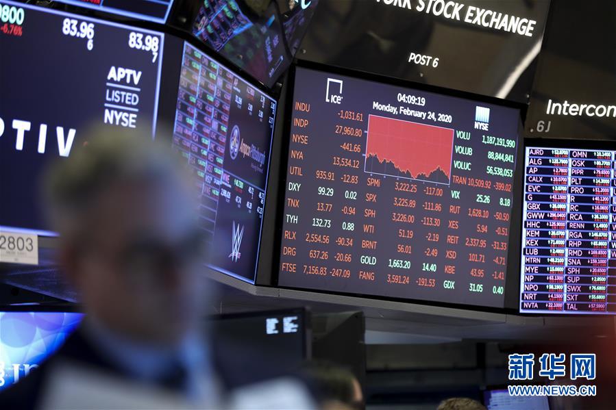 2月24日,美國紐約證券交易所的電子屏顯示當(dāng)天收盤情況。新華社記者 王迎 攝