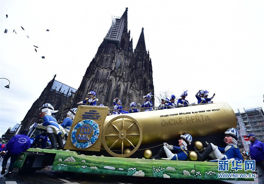 2月24日,在德國科隆,人們乘坐花車參加“玫瑰星期一”大游行。