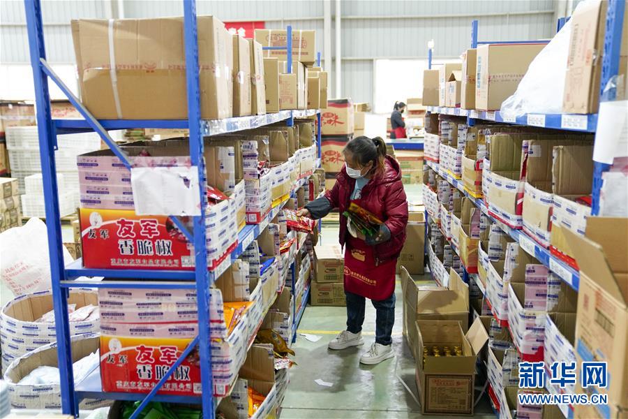 2月27日,在秀山(武陵)現(xiàn)代物流園區(qū)的電商云倉(cāng)內(nèi),工人在按照訂單配貨。地處重慶市秀山縣的秀山(武陵)現(xiàn)代物流園區(qū),是渝湘黔三省市交界地區(qū)的區(qū)域性物流中心。重慶市秀山縣在做好新冠肺炎疫情防控工作前提下,當(dāng)?shù)卣e極幫助電商、物流企業(yè)解決招工、運(yùn)輸、銷(xiāo)售等方面的實(shí)際問(wèn)題,推動(dòng)秀山(武陵)現(xiàn)代物流園區(qū)快速進(jìn)入全面復(fù)工復(fù)產(chǎn)階段。據(jù)介紹,隨著物流園區(qū)的電商和物流企業(yè)全面復(fù)工復(fù)產(chǎn),既滿足當(dāng)?shù)厝罕姷奈镔Y供應(yīng),又幫助當(dāng)?shù)剞r(nóng)產(chǎn)品通過(guò)電商平臺(tái)實(shí)現(xiàn)快速銷(xiāo)售。新華社記者劉潺攝