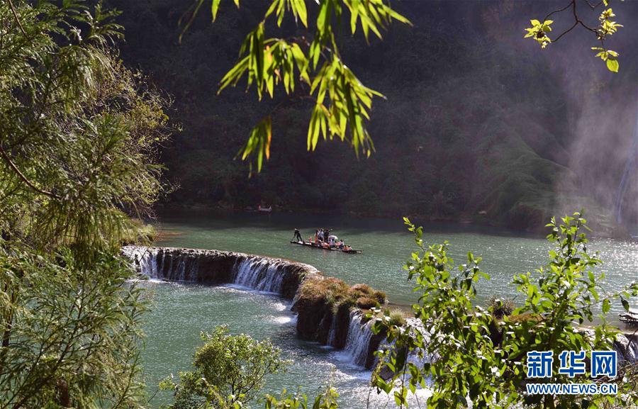 3月8日,游人在云南省曲靖市羅平九龍瀑布群風(fēng)景區(qū)游覽。 初春時(shí)節(jié),云南省曲靖市羅平九龍瀑布群風(fēng)景區(qū)內(nèi),湖光山色清澈秀麗,美不勝收。 新華社記者 楊宗友 攝