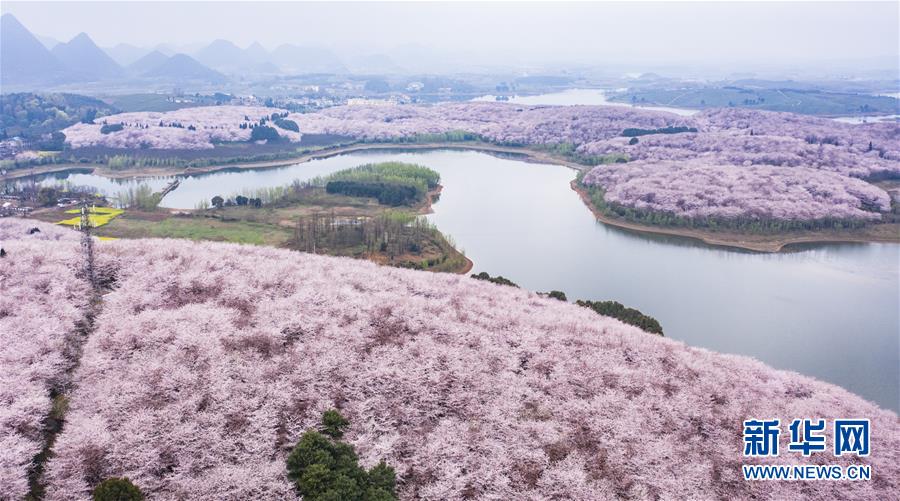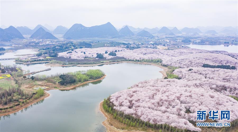 3月12日拍攝的貴安新區(qū)櫻花觀光園風(fēng)景(無人機照片)。 近日,貴州省貴安新區(qū)櫻花觀光園內(nèi)櫻花競相盛開,花團錦簇間春意盎然。據(jù)介紹,疫情防控期間,為避免人群聚集,櫻花園暫不接待游客。 新華社記者 陶亮 攝