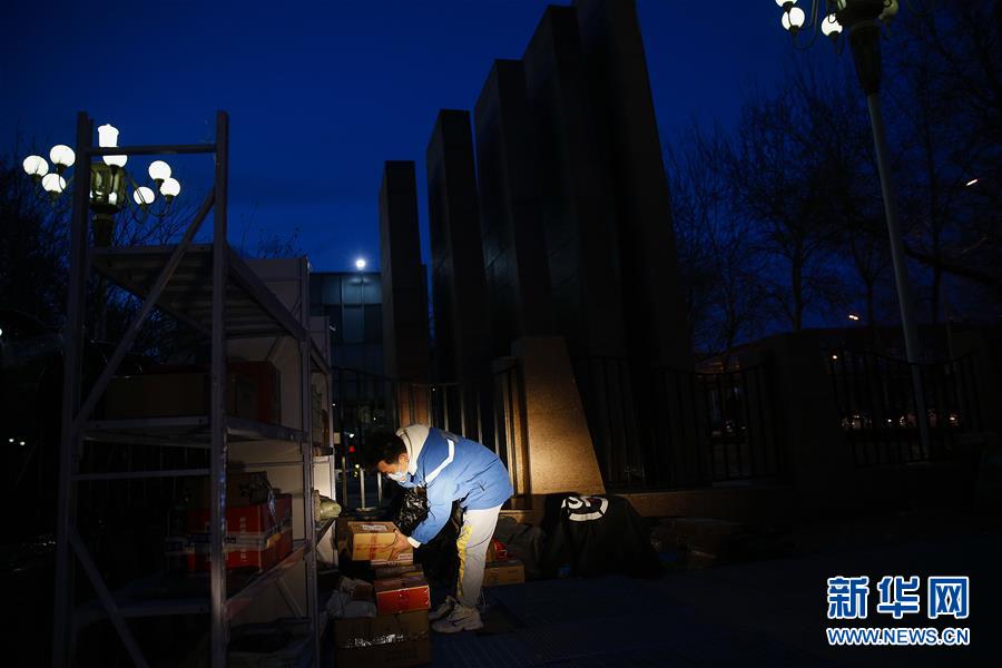 3月12日,李杰在中國青年政治學(xué)院快遞點查看仍未領(lǐng)取的包裹。新華社記者張玉薇攝