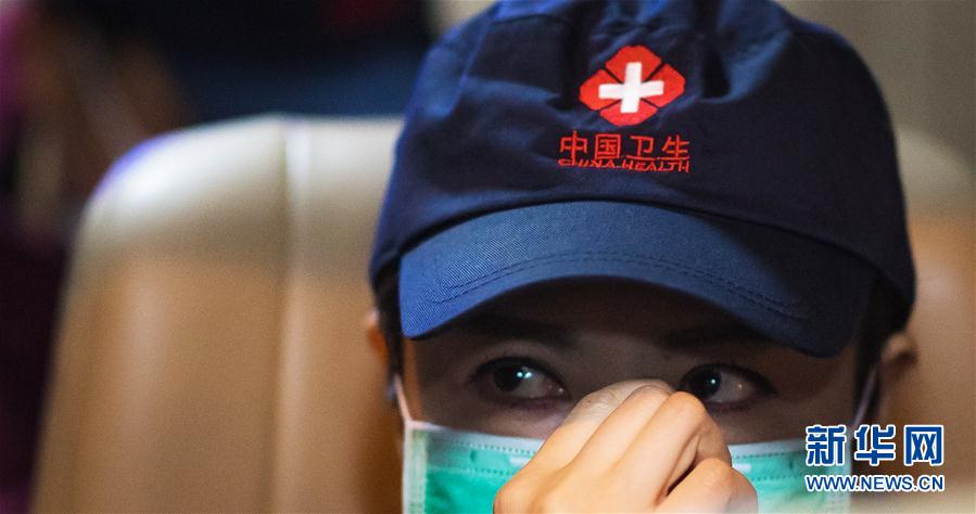 3月17日,陜西國(guó)家緊急醫(yī)學(xué)救援隊(duì)隊(duì)員閔渝婷在返程途中擦拭眼淚。新華社記者肖藝九攝