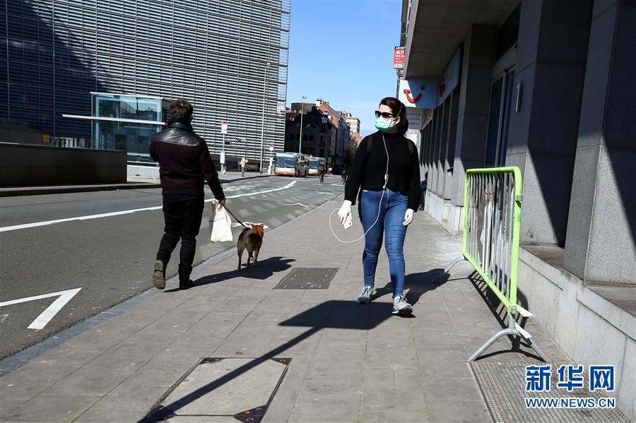 3月18日,在比利時(shí)布魯塞爾,佩戴口罩的行人走在馬路上。 截至17日,比利時(shí)累計(jì)確診新冠肺炎病例1243例,死亡10例,治愈出院15例。比利時(shí)首相維爾梅斯當(dāng)天宣布,從18日12時(shí)起全國(guó)范圍內(nèi)將實(shí)施“封城”,結(jié)束時(shí)間暫定為4月5日。根據(jù)全國(guó)安全委員會(huì)特別會(huì)議決定,除上下班,購(gòu)買食品、藥品、就醫(yī)等特定情況外,全國(guó)民眾必須待在家中;有條件的企業(yè)必須進(jìn)行遠(yuǎn)程辦公。  新華社記者 張鋮 攝