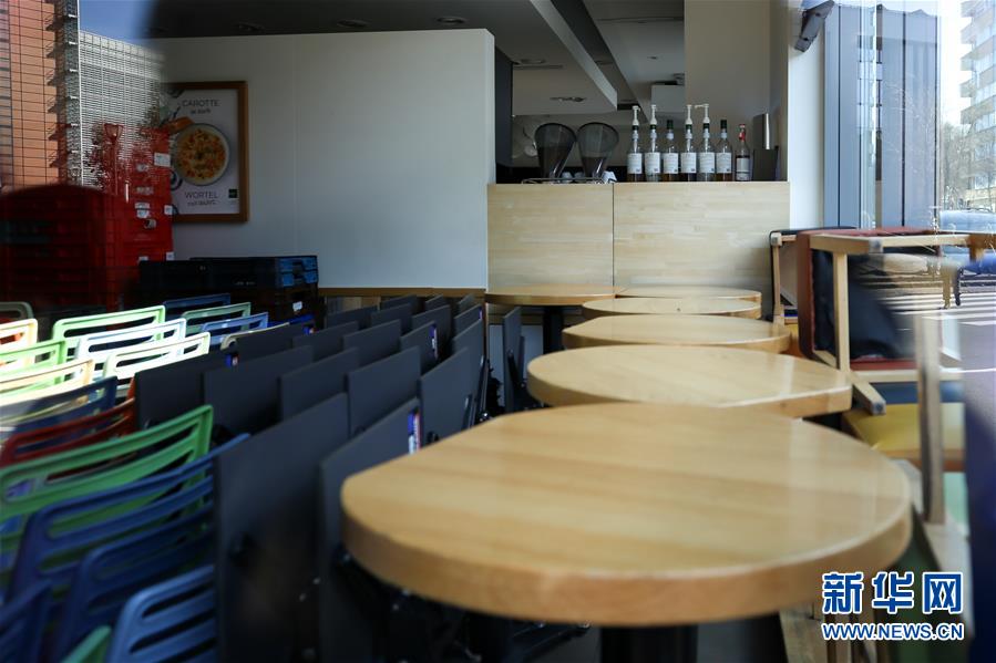這是3月18日在比利時(shí)布魯塞爾拍攝的一家關(guān)閉的咖啡館。 新華社記者 張鋮 攝