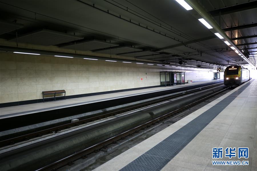 3月18日,在比利時(shí)布魯塞爾,舒曼火車站的月臺(tái)上空空蕩蕩。 新華社記者 張鋮 攝