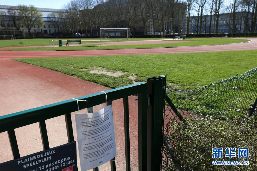 這是3月18日在比利時(shí)布魯塞爾拍攝的一處關(guān)閉的運(yùn)動場。 新華社記者 張鋮 攝