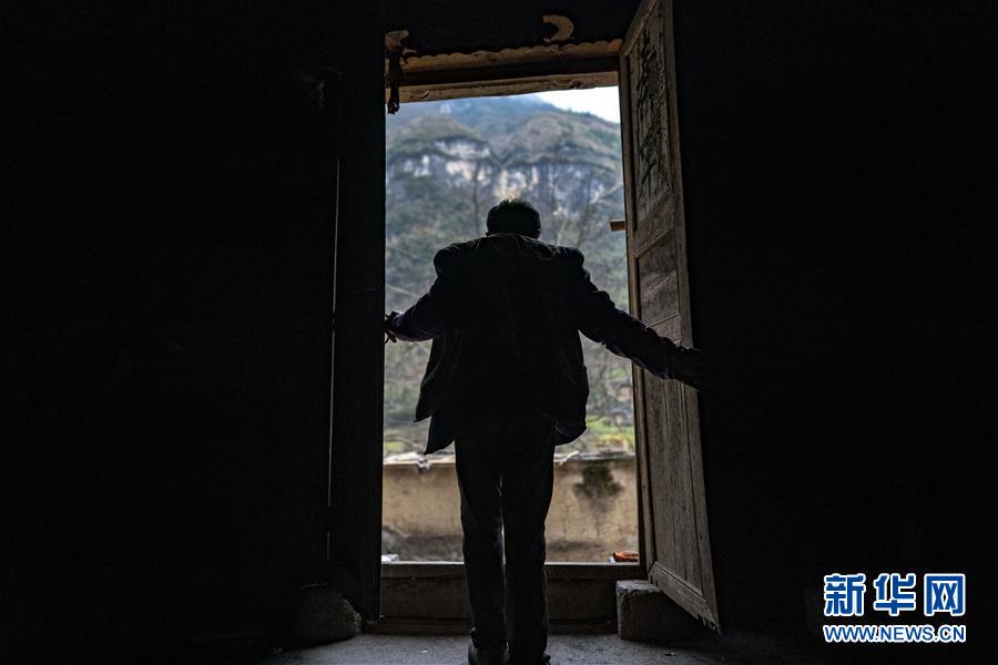 云南省永善縣大興鎮(zhèn)駱丘村村民晏付高關上老屋的大門準備離開(3月14日攝)。 新華社記者 江文耀 攝