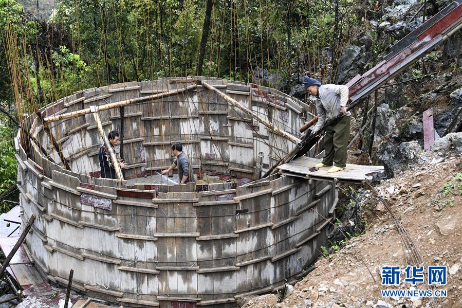 廣西都安瑤族自治縣隆福鄉(xiāng)的村民在修建家庭水柜(3月17日攝)。廣西有近一半貧困人口生活在石漠化地區(qū),涉及數(shù)十個縣區(qū)。這里也是廣西飲水保障程度最低的地區(qū),解決貧困人口飲水問題是廣西脫貧攻堅戰(zhàn)“硬仗中的硬仗”。“十三五”以來,廣西加快實施農(nóng)村飲水安全鞏固提升工程。因地制宜,采取新建、擴建及管網(wǎng)延伸等多種措施,補齊貧困地區(qū)水利薄弱短板,進一步提升石漠化地區(qū)群眾飲水安全保障水平,助推脫貧攻堅。新華社記者曹祎銘攝