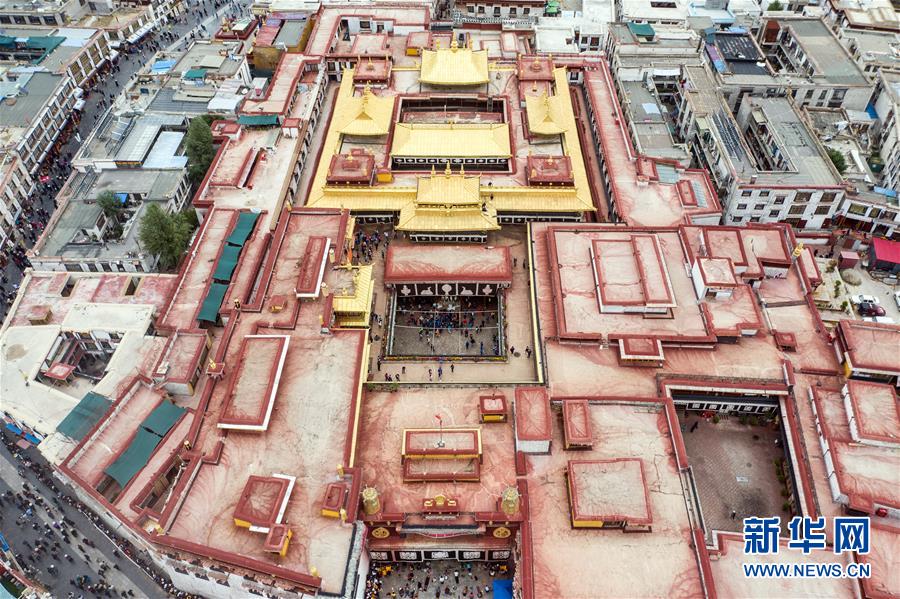 8月10日無(wú)人機(jī)拍攝的大昭寺。新華社記者普布扎西攝