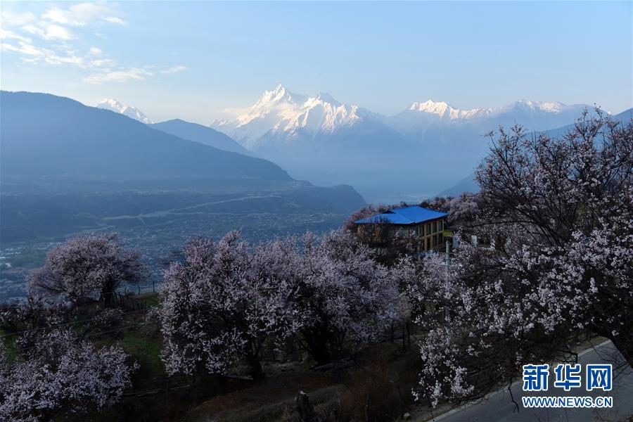 南迦巴瓦峰下盛開(kāi)的桃花(4月1日攝)。新華社記者黃豁攝