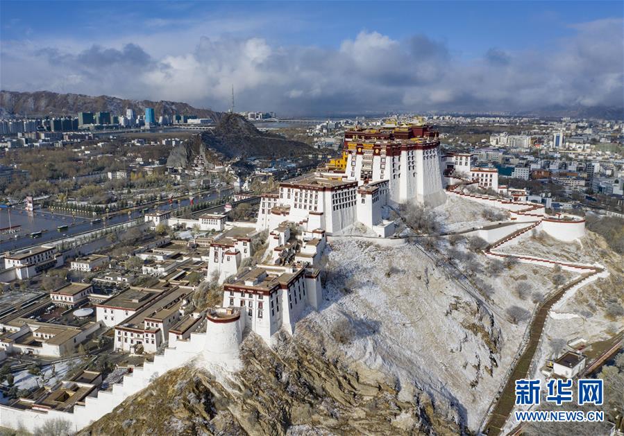 4月5日拍攝的布達(dá)拉宮雪景(無人機(jī)照片)。新華社記者普布扎西攝