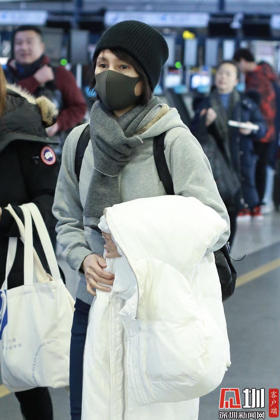 2019年1月5日,北京,袁泉現(xiàn)身機場。