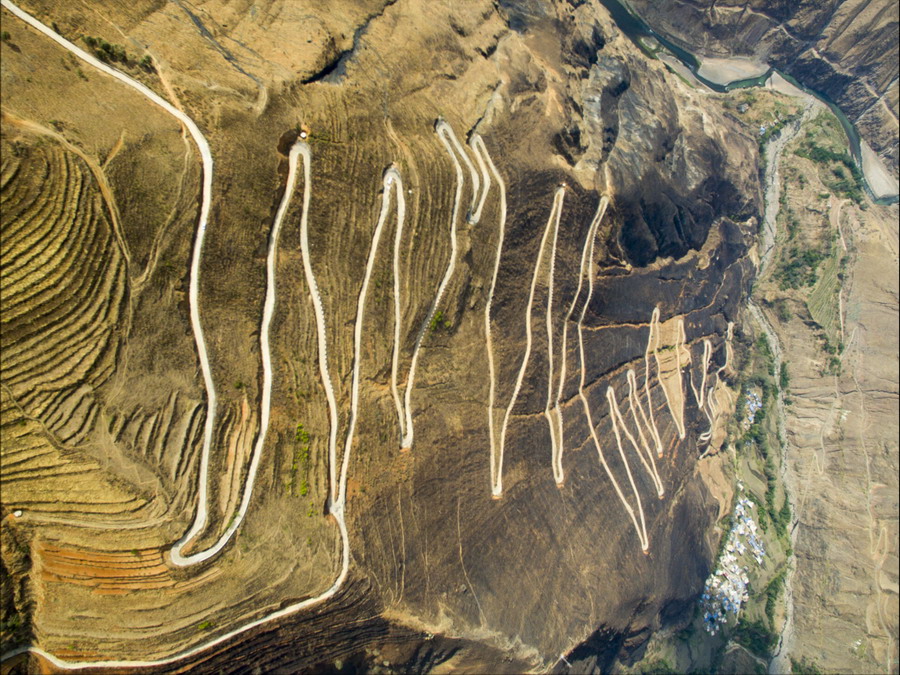 這是“怒江72拐”,該處位于西藏自治區(qū)昌都市八宿縣境內(nèi),是川藏線上一段艱險與美景并存的山路(10月23日無人機拍攝)。全長2000多公里的川藏公路,從成都開始,一路向西到終點拉薩,在橫斷山脈、喜馬拉雅山脈和念青唐古拉山脈間蜿蜒盤旋,因海拔落差大,彎道眾多,形成天路奇觀。川藏公路1954年12月25日通車,65年來,國家對川藏公路進行了大規(guī)模改造升級,建設(shè)了眾多橋梁和隧道,行車條件得到明顯改善。新華社記者江宏景攝