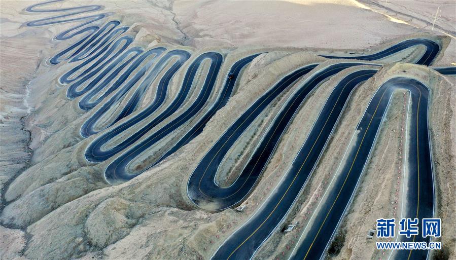 這是10月20日無人機拍攝的新疆塔什庫爾干塔吉克自治縣吾格亞提盤山公路。在中國西陲的新疆帕米爾高原,塔什庫爾干塔吉克自治縣縣城到瓦恰鄉(xiāng)之間有條蜿蜒的盤山公路,海拔超4200米,全長36公里,最大落差近1000米,被當?shù)厝朔Q為“高原天路”。盤山公路彎曲盤旋的走勢與周邊雄渾壯麗的風光,共同構(gòu)成一幅壯美畫卷。這條公路名為吾格亞提盤山公路,2019年7月投入使用,便利了山區(qū)農(nóng)牧民的出行。新華社記者丁磊攝
