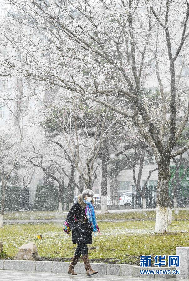 4月21日,長春市民冒雪出行。當(dāng)日,吉林省多地迎來降雪天氣。新華社記者許暢攝