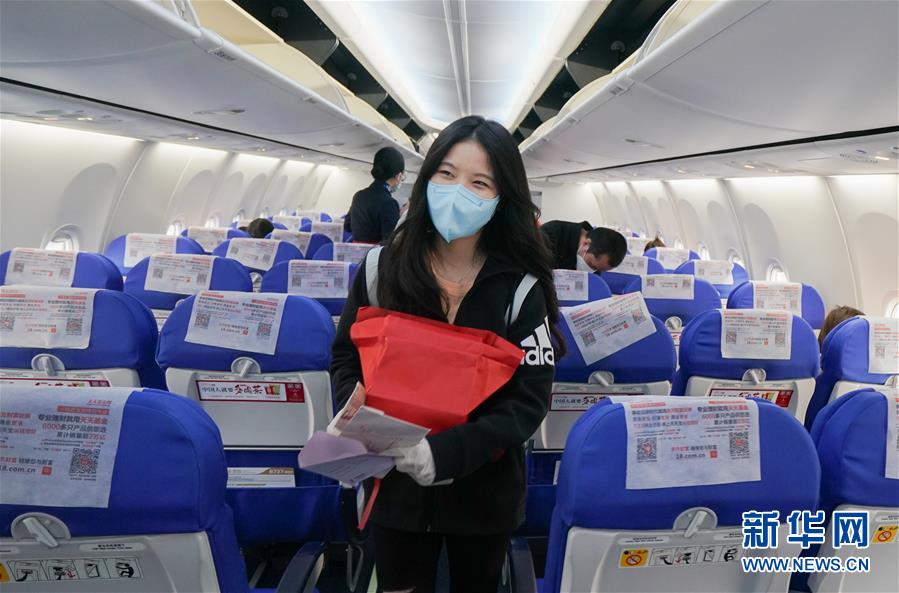 4月8日,在武漢天河國際機(jī)場,東方航空MU2527航班旅客登機(jī)。新華社記者程敏攝