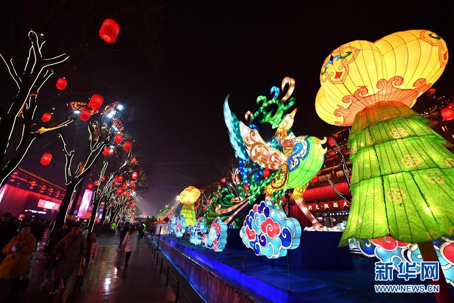 1月17日,游客在西安大唐不夜城步行街欣賞彩燈。大唐不夜城步行街位于西安市大雁塔腳下,近年來,步行街突出歷史文化特色,以唐代元素為主線,創(chuàng)新打造文化濃厚的現(xiàn)代時尚街區(qū),已成為西安旅游新地標。  新華社記者 張博文 攝