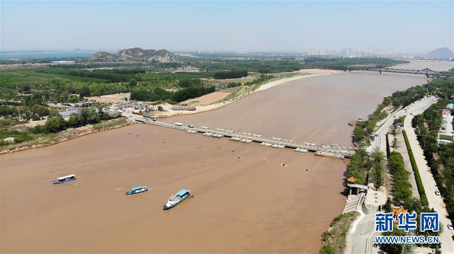 4月24日在山東濟南拍攝的黃河景色(無人機照片)。春暖花開的時節(jié),濟南黃河兩岸春風送綠,大河、綠植與城市構成了一幅春的畫卷。新華社記者王凱攝