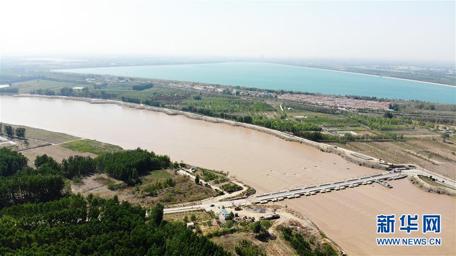 4月24日在山東濟(jì)南拍攝的黃河景色(無(wú)人機(jī)照片)。春暖花開(kāi)的時(shí)節(jié),濟(jì)南黃河兩岸春風(fēng)送綠,大河、綠植與城市構(gòu)成了一幅春的畫卷。新華社記者王凱攝
