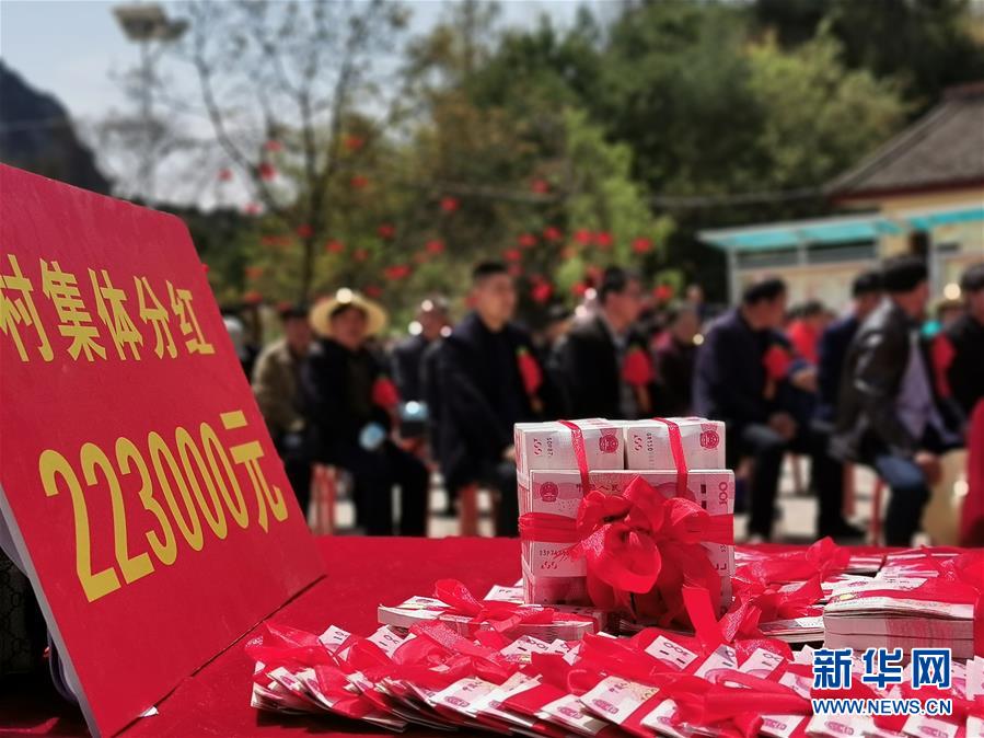 4月24日拍攝的甘肅省隴南市徽縣鐵山村公開(kāi)分紅大會(huì)現(xiàn)場(chǎng)。新華社記者張新新攝