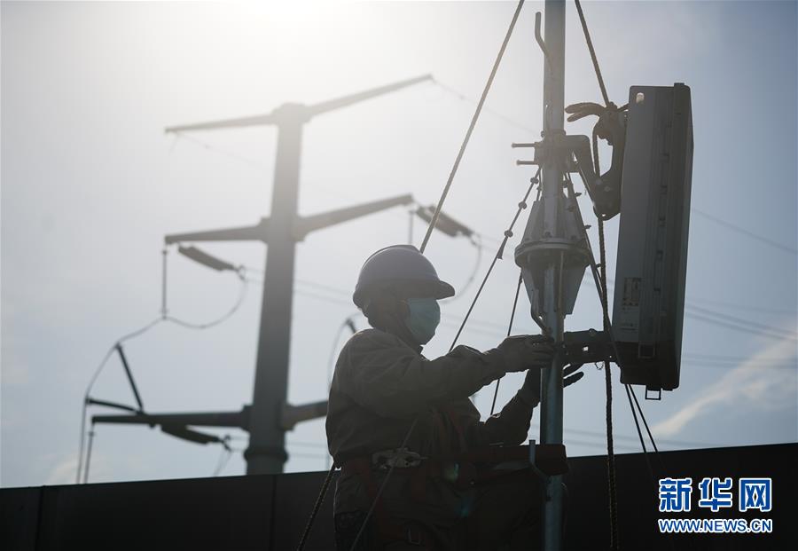 4月25日,在南京220千伏城南河變電站屋頂,工人在架設(shè)5G設(shè)備。當(dāng)日,三大通信運(yùn)營商的2座5G、3座4G基站建設(shè)工作在南京220千伏城南河變電站屋頂有序展開。在變電站內(nèi)建設(shè)基站可有效利用電網(wǎng)資源,縮短建設(shè)周期,節(jié)約建設(shè)成本。新華社記者季春鵬攝