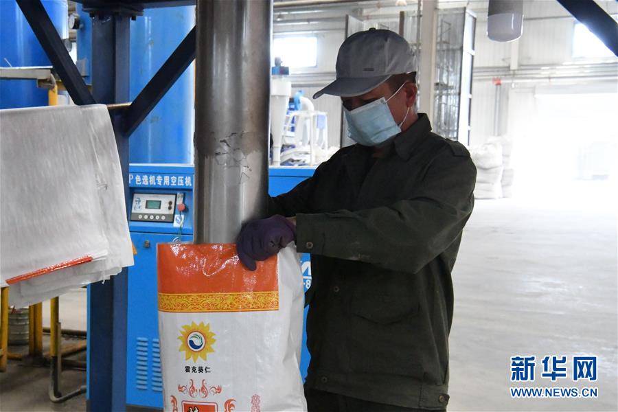 4月26日,中哈霍爾果斯國際邊境合作中心中方配套區(qū)內(nèi)的霍爾果斯霍克葵仁商貿(mào)有限公司生產(chǎn)車間內(nèi),員工將產(chǎn)品裝袋。3月以來,在做好疫情防控的前提下,新疆霍爾果斯“口岸經(jīng)濟(jì)”加快復(fù)蘇,每天出入其中的商販和游客逐漸增多。與此同時(shí),位于中哈霍爾果斯國際邊境合作中心中方配套區(qū)內(nèi)的各家企業(yè)正抓緊時(shí)間生產(chǎn)。新華社記者顧煜攝