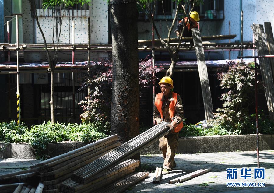 4月26日,工人在渝中區(qū)大溪溝街道雙鋼路社區(qū)改造提升項目施工現(xiàn)場作業(yè)。近段時間以來,重慶市渝中區(qū)大溪溝街道加快推進(jìn)轄區(qū)內(nèi)老舊小區(qū)改造提升工作,從環(huán)境衛(wèi)生、房屋管理及養(yǎng)護(hù)、安防及車輛管理、綠化管理等方面進(jìn)行綜合改造提升,以增強(qiáng)社區(qū)居民的幸福感、獲得感、安全感。新華社記者王全超攝