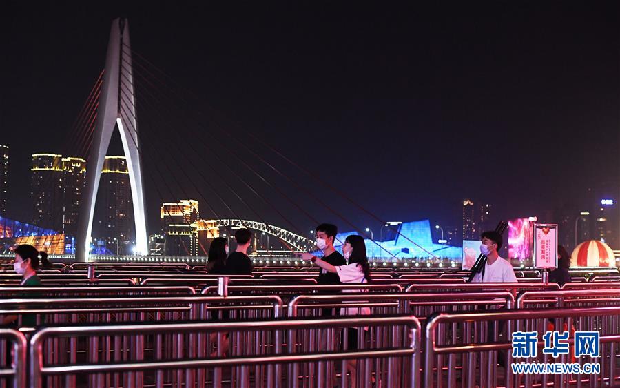 5月3日晚,游客在重慶洪崖洞景區(qū)內(nèi)游覽。 “五一”假日期間,位于重慶市渝中區(qū)的洪崖洞景區(qū)按照“錯(cuò)峰開(kāi)放、限量開(kāi)放、預(yù)約開(kāi)放、有序開(kāi)放”的要求,加強(qiáng)景區(qū)開(kāi)放管理,引導(dǎo)游客安全有序旅游,確保在做好疫情防控的同時(shí),不斷優(yōu)化游客旅游體驗(yàn),恢復(fù)旅游經(jīng)濟(jì)。 新華社記者 王全超 攝
