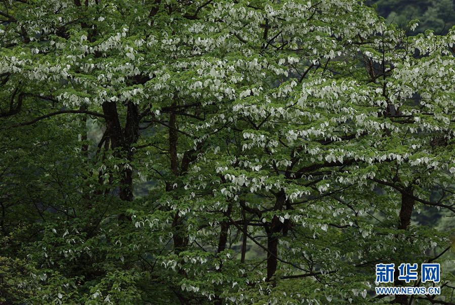 位于四川省滎經(jīng)縣的龍蒼溝國家森林公園里,鴿子花盛開(5月4日攝)。目前,位于四川省大相嶺山脈東麓北坡的龍蒼溝國家森林公園里,約8萬畝鴿子花盛開,猶如鴿群展翅欲飛。鴿子花即珙桐花,珙桐是珍稀植物,有著植物“大熊貓”“活化石”之稱,是國家一級保護植物,也是著名的觀賞植物。2008年,華中農(nóng)業(yè)大學、湖北民族學院和四川省縈經(jīng)縣林業(yè)部門聯(lián)合對龍蒼溝森林公園的珙桐進行了種群生態(tài)學調(diào)查,發(fā)現(xiàn)珙桐在這里共分布約8萬畝,集中成片分布近4萬畝。珙桐面積之大、株數(shù)之多、密度之高,十分罕見。新華社記者 江宏景 攝