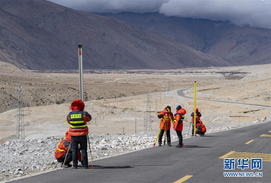 國(guó)測(cè)一大隊(duì)隊(duì)員在西藏定日縣曲當(dāng)鄉(xiāng)境內(nèi)進(jìn)行水準(zhǔn)測(cè)量(4月18日攝)。水準(zhǔn)測(cè)量是一種利用提供水平視線的儀器(如水準(zhǔn)儀、水準(zhǔn)標(biāo)尺),測(cè)定地面不同點(diǎn)之間的高差,并以此推算高度的一種方法,是經(jīng)典大地測(cè)量的重要技術(shù)之一。在目前正在進(jìn)行的2020珠峰高程測(cè)量中,部分國(guó)測(cè)一大隊(duì)隊(duì)員承擔(dān)了水準(zhǔn)測(cè)量的任務(wù)。新華社記者孫非攝