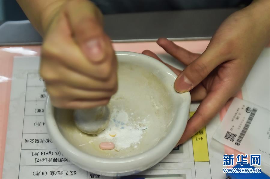 5月11日,在北京地壇醫(yī)院感染二科護士站,一名護士為不方便服藥的病人研磨藥片。北京地壇醫(yī)院是北京市收治新冠肺炎患者的定點醫(yī)院之一,醫(yī)院的醫(yī)護人員一直奮戰(zhàn)在抗擊疫情的一線。在國際護士節(jié)前夕,記者前往北京地壇醫(yī)院,記錄下抗疫一線護士的日常工作狀態(tài)。新華社記者彭子洋攝