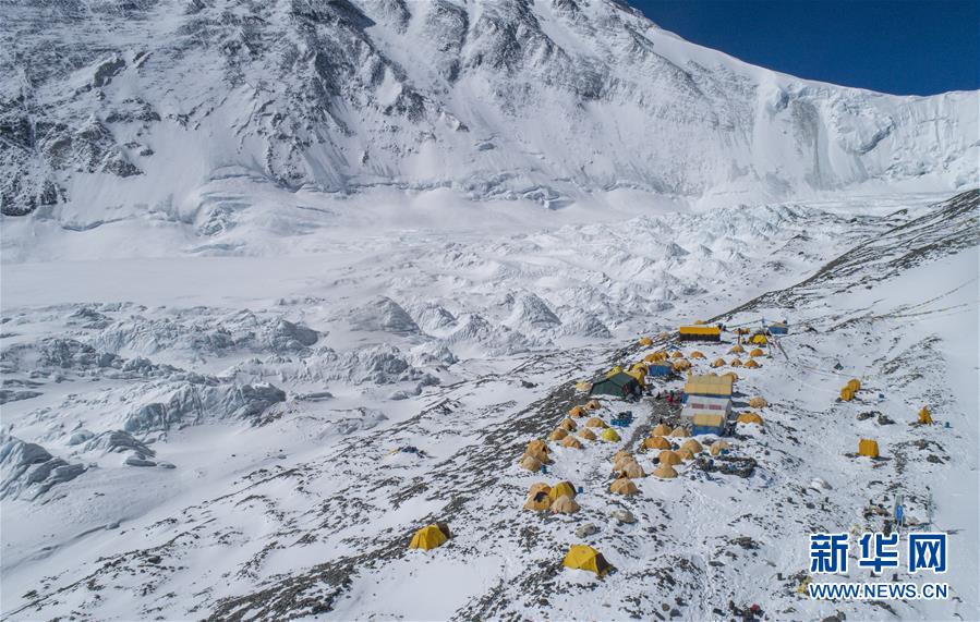 這是海拔6500米的珠峰前進(jìn)營地(5月10日無人機(jī)照片)。