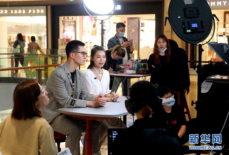 這是5月9日在上海一家商場(chǎng)拍攝的網(wǎng)絡(luò)直播活動(dòng)現(xiàn)場(chǎng)。新華社記者陳飛攝