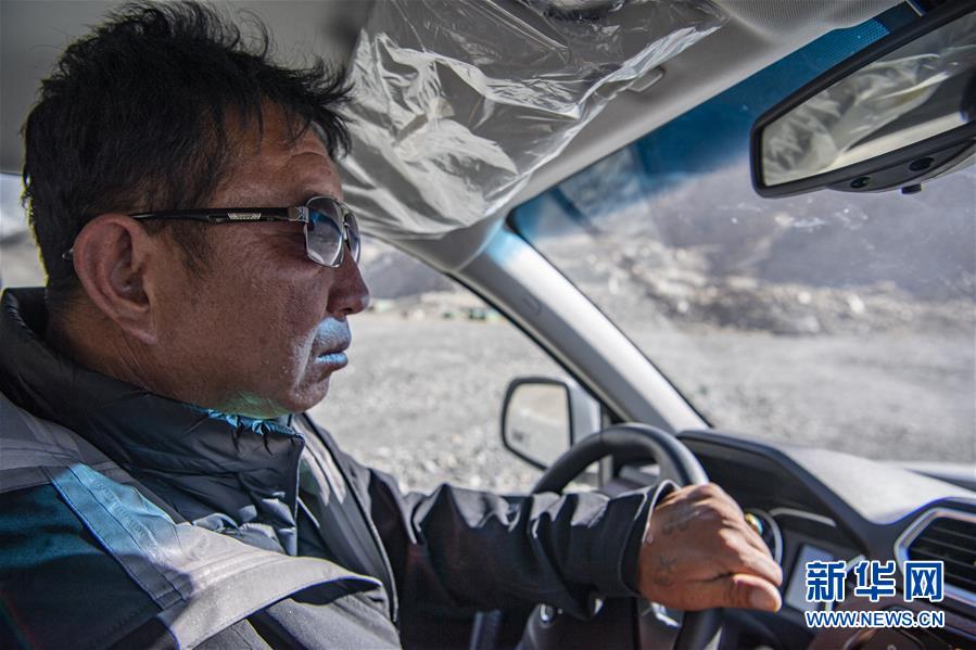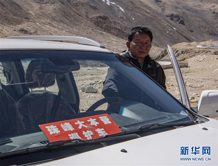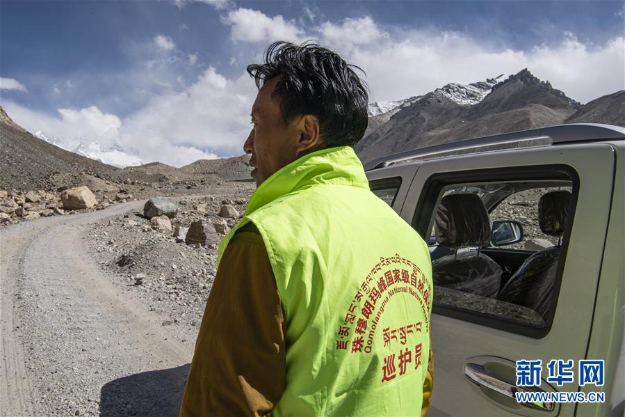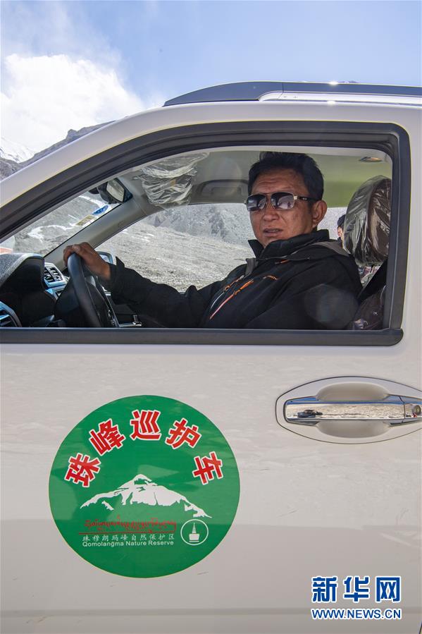拉巴次仁駕駛巡護(hù)車在珠穆朗瑪峰國(guó)家級(jí)自然保護(hù)區(qū)內(nèi)巡邏(5月15日攝)。新華社記者孫非攝