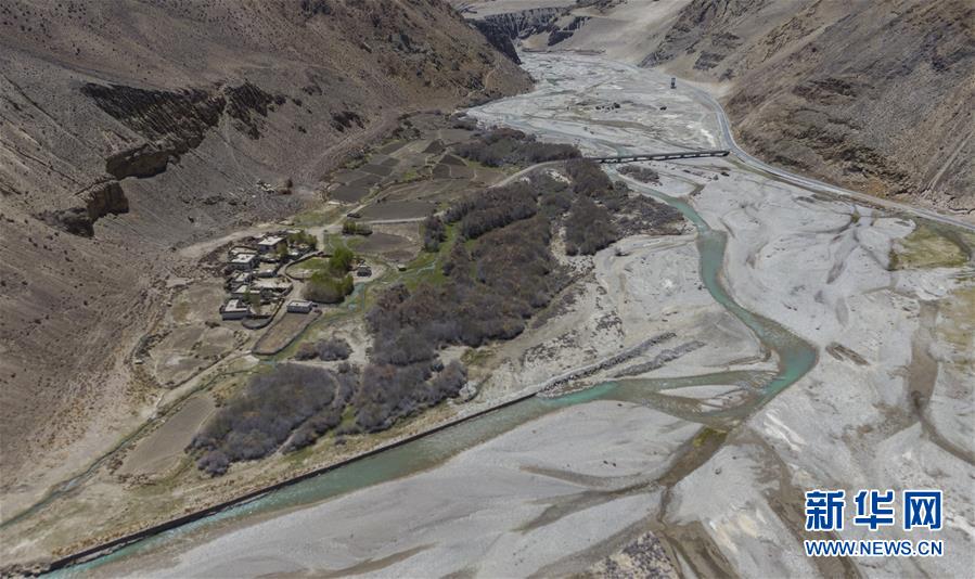 珠穆朗瑪峰國(guó)家級(jí)自然保護(hù)區(qū)內(nèi)的村莊與濕地(5月16日攝,無(wú)人機(jī)照片)。新華社記者普布扎西攝