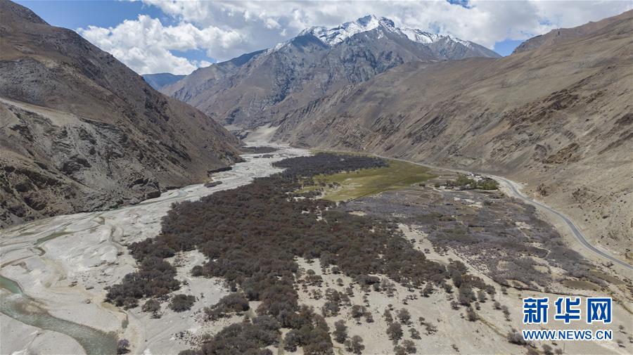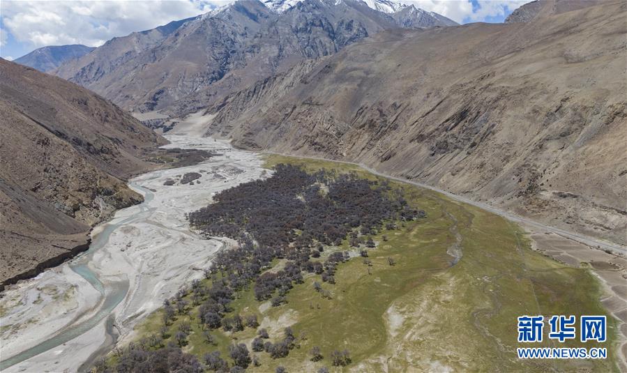 珠穆朗瑪峰國(guó)家級(jí)自然保護(hù)區(qū)內(nèi)的沙棘林(5月16日攝,無(wú)人機(jī)照片)。新華社記者孫非攝