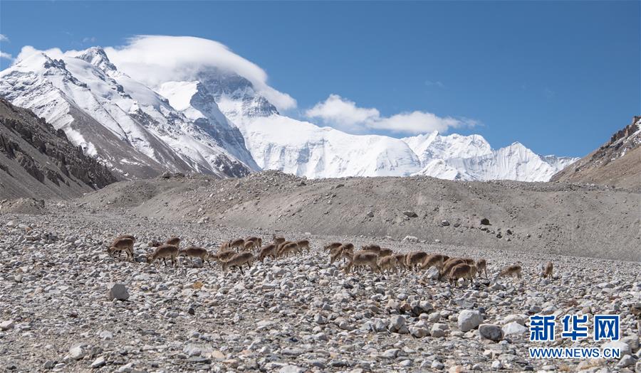 棲息在珠穆朗瑪峰國(guó)家級(jí)自然保護(hù)區(qū)內(nèi)的巖羊(5月8日攝)。新華社記者晉美多吉攝