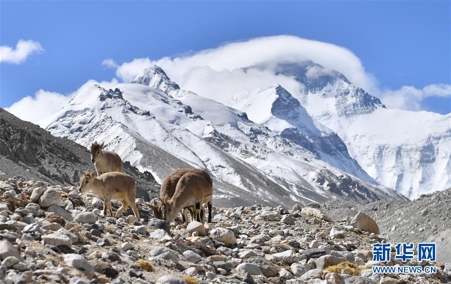 棲息在珠穆朗瑪峰國(guó)家級(jí)自然保護(hù)區(qū)內(nèi)的巖羊(4月29日攝)。新華社記者普布扎西攝