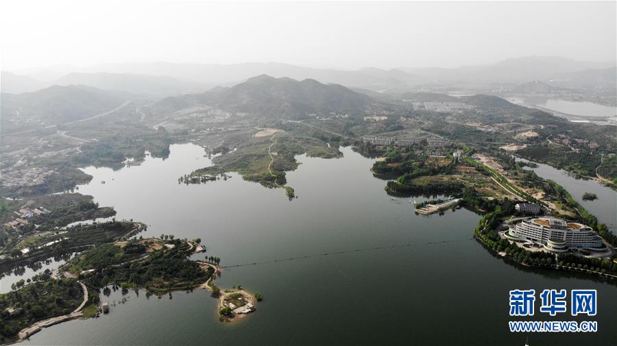 這是5月17日拍攝的雪野湖景色(無人機(jī)照片)。山東濟(jì)南風(fēng)景區(qū)——雪野湖波光粼粼,岸邊綠樹環(huán)抱,加上星星點(diǎn)點(diǎn)的帆船在湖面搖曳,景色宜人。新華社記者王凱攝